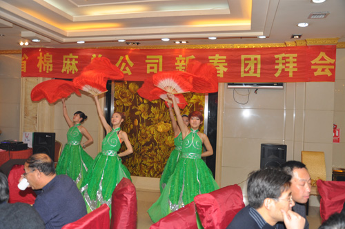 2012年1月15日下午,,,甘肃省棉麻总公司在兰州举行了新春团拜会。。省供销社副主任张彬、、副主任寇明尚及相关处室负责人,,,,尊龙时凯集团董事长岳建武及省棉麻公司全体职工欢聚一堂,,,共迎新春。。