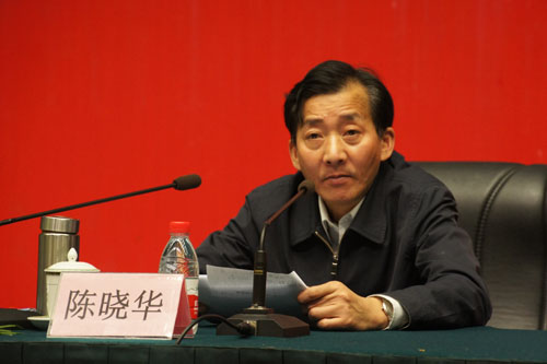 农业部副部长陈晓华作了重要讲话。。。他充分肯定了2011年农产品市场流通工作在促销服务、、、、市场体系建设、、菜篮子工程、、、农产品品牌建设、、、、流通支持政策等方面取得的成绩。。。。2012年农产品市场流通工作的重点任务是:继续稳步推进国家级专业批发市场建设、、、努力提高优势产业市场流通能力、、、、切实加强农产品营销促销服务、、、深入推进菜篮子工程建设。。。