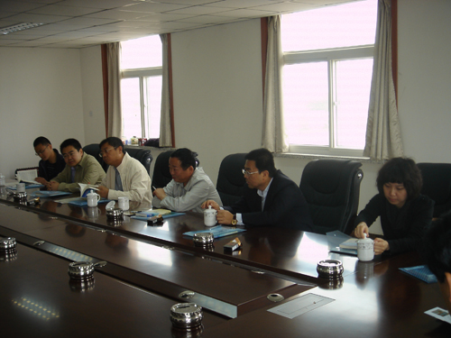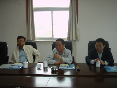 鱼向东(左一)、、高明亮(中)、、、、黄时武(右一)听取企业工作汇报