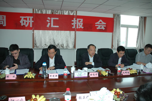 佟宝君一行认真听取有关方面的工作汇报