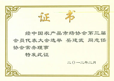 全国城市农贸中心联合会理事单位证书