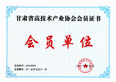 甘肃省高技术产业协会会员证书