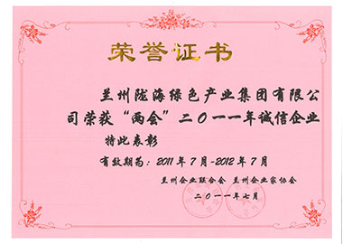 兰州尊龙时凯绿色产业集团有限公司荣获2011年“诚信企业”